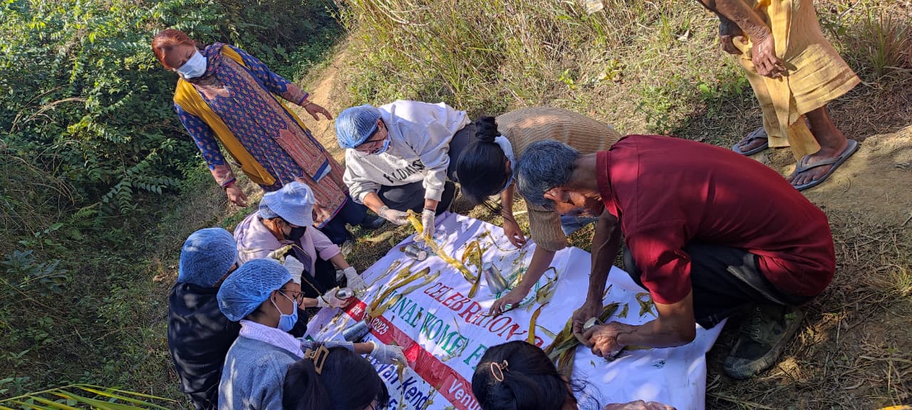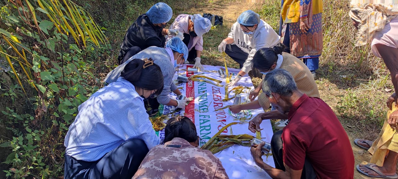 In-plant Training - Students of College of Community Science, Tura being involved in retted pineapple leaves fibre extraction at farmer's field at Andro Khoibu, Imphal East on 18th February, 2026.