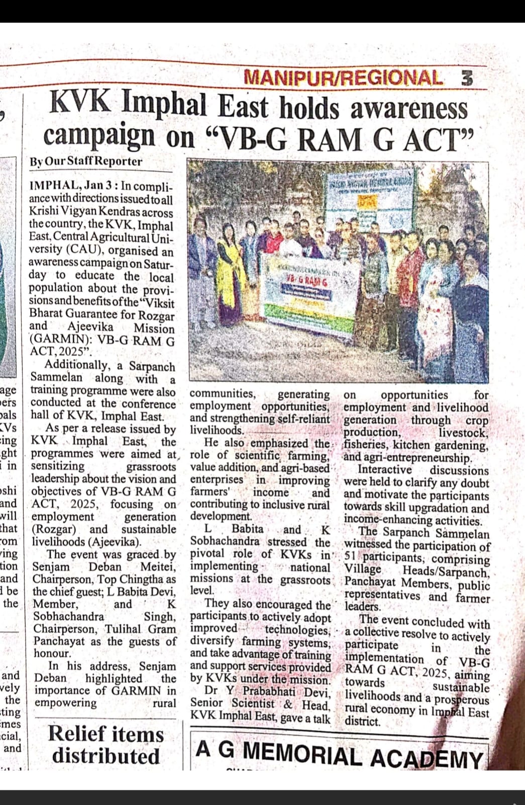 Newspaper coverage for organization of Awareness Campaign on VB G RAM G
